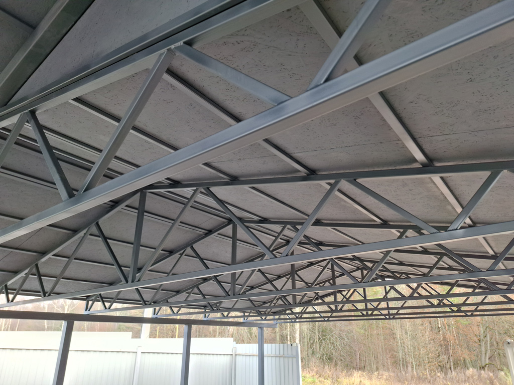 Навес на основе сварной металлической конструкции для автомобиля изготавливается на заказ. Тип и материал крыши, цвет каркаса и покрытия, форма, размеры и другие необходимые параметры учитываются при изготовлении. Возможно изготовление по размерам, эскизу или чертежу.