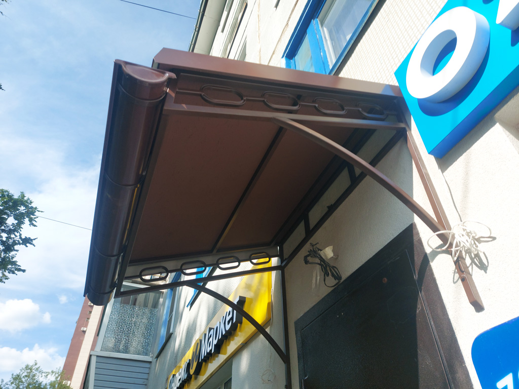 Собственные фото козырьков изготовленных и установленных компанией «Проферум Калуга». По запросу мы можем предоставить больше фото и видео понравившегося козырька. Подробную информацию о конкретном козырьке вы можете получить в разделе портфолио.