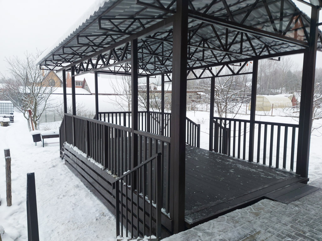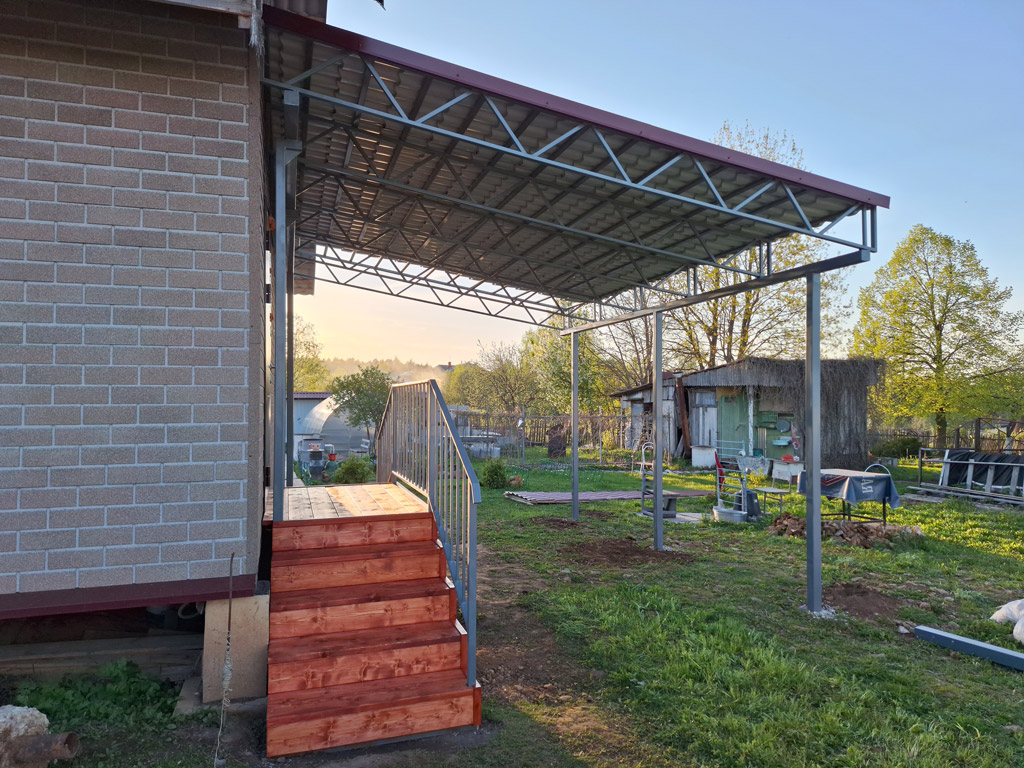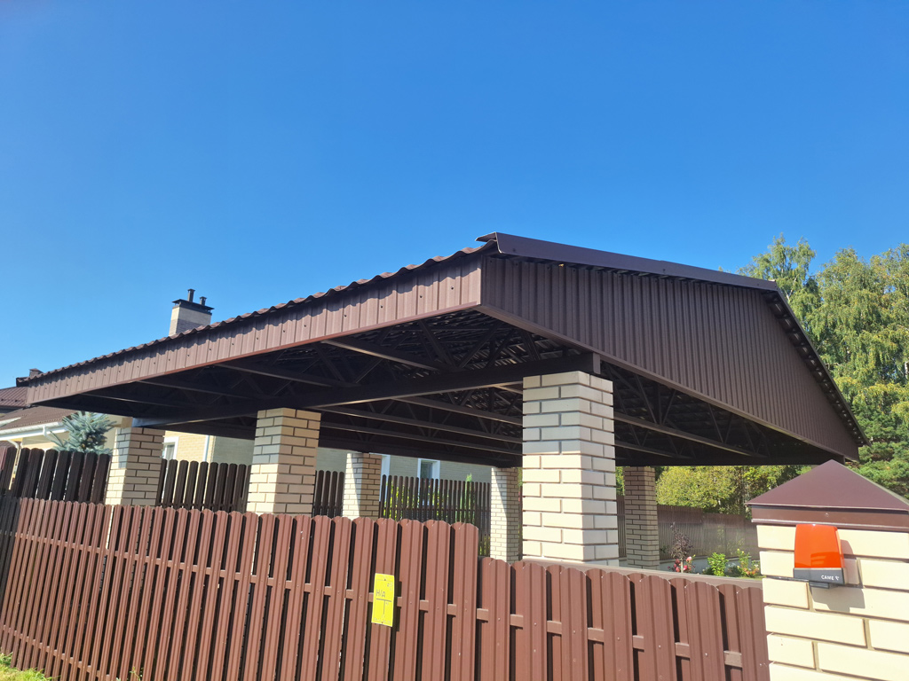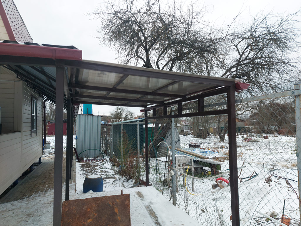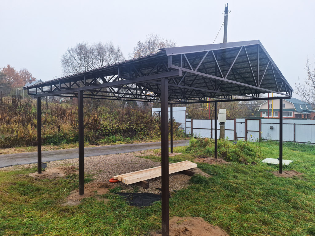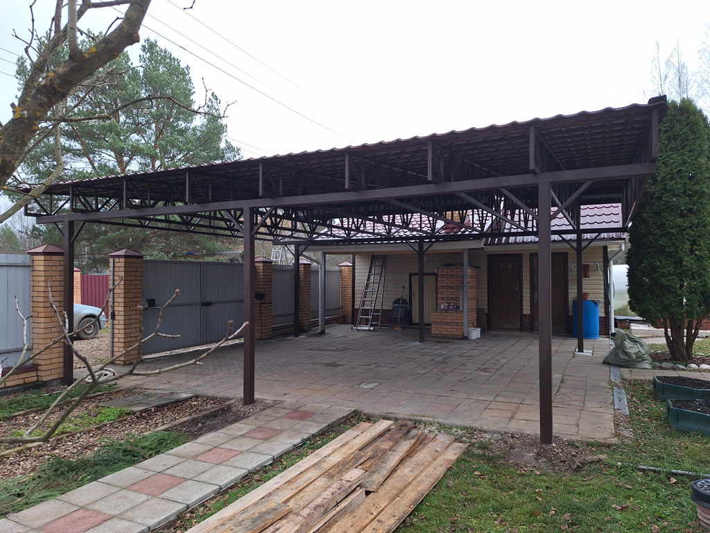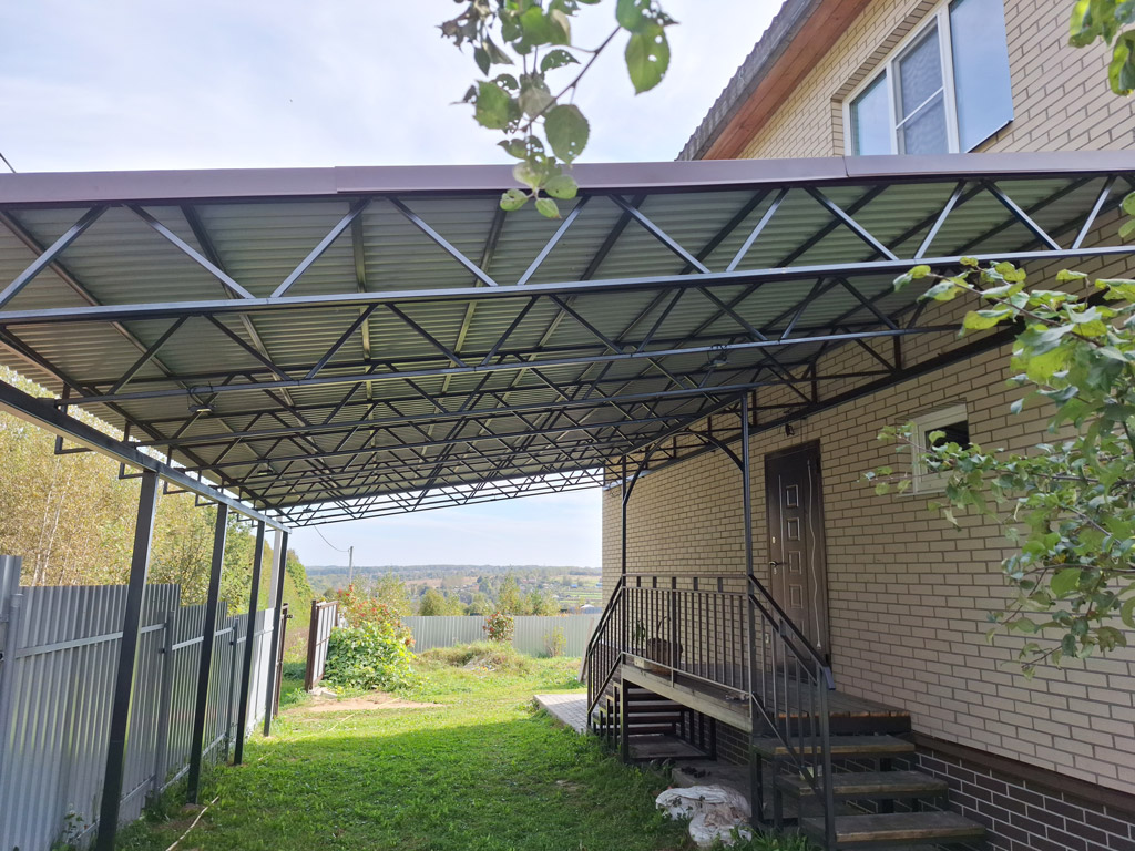 Собственные фото навесов изготовленных и установленных компанией «Проферум Калуга». По запросу мы можем предоставить больше фото и видео понравившегося навеса. Подробную информацию о конкретном навесе вы можете получить в разделе портфолио.