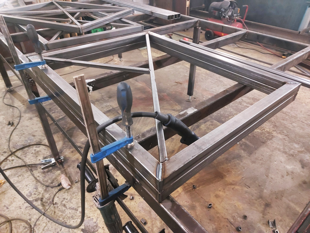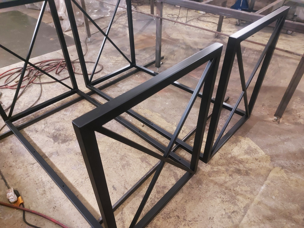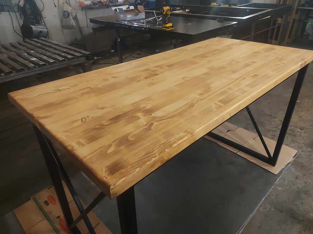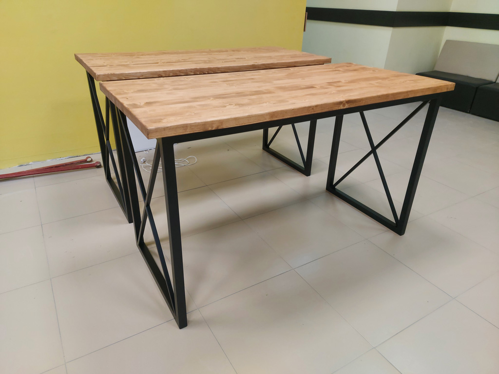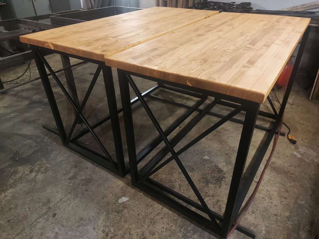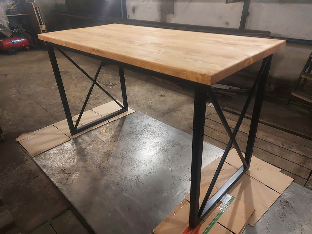 - Сварка металлического подстолья, подготовка и окраска столешницы маслом.