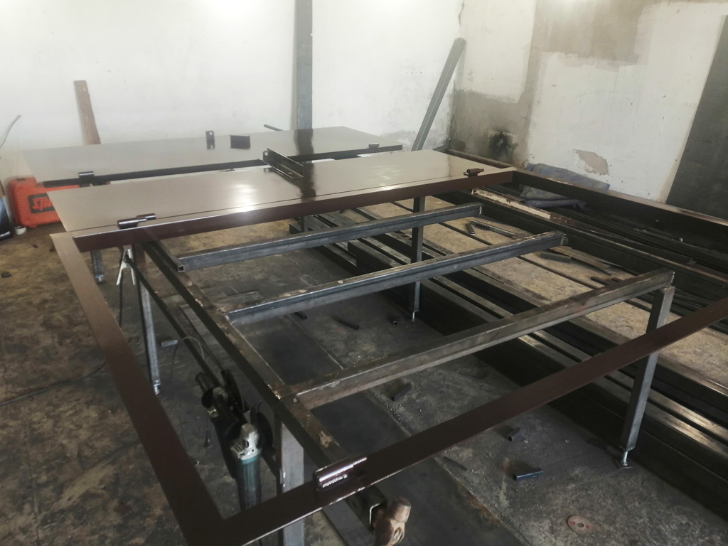 Изготовлена металлическая сварная двухстворчатая дверь размером 1580х2200 мм. В работе использовался листовой металл толщиной 2 мм., металлический уголок 63х63х5 в качестве рамы, профильная труба 40х40х1.5 и 40х20х1.5 в качестве каркаса. Конструкция двери предусматривает возможность последующего утепления. Реализовано запирание двери на внутренний и навесной замок. Работа выполнена "под ключ" с проведением демонтажных работ.