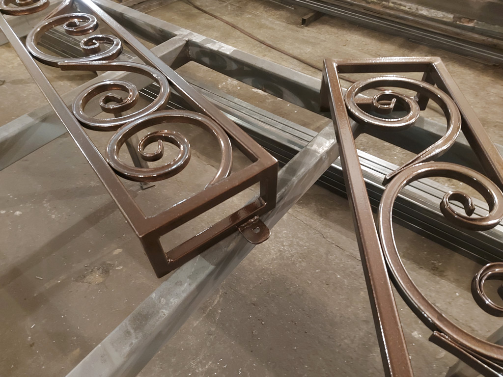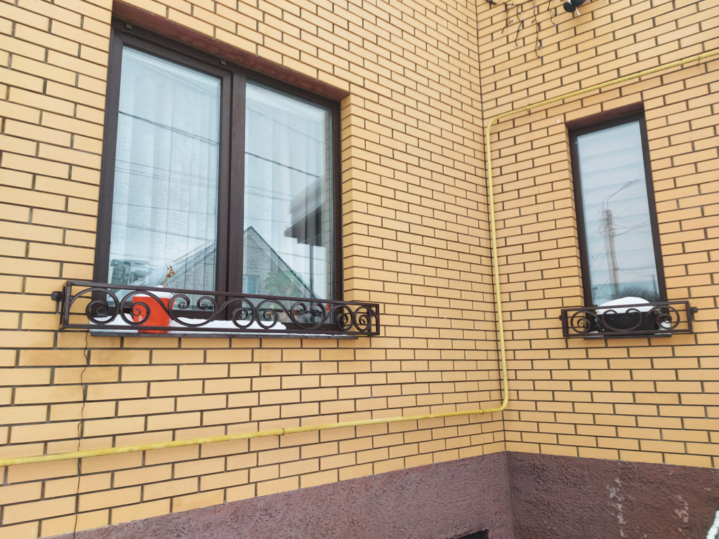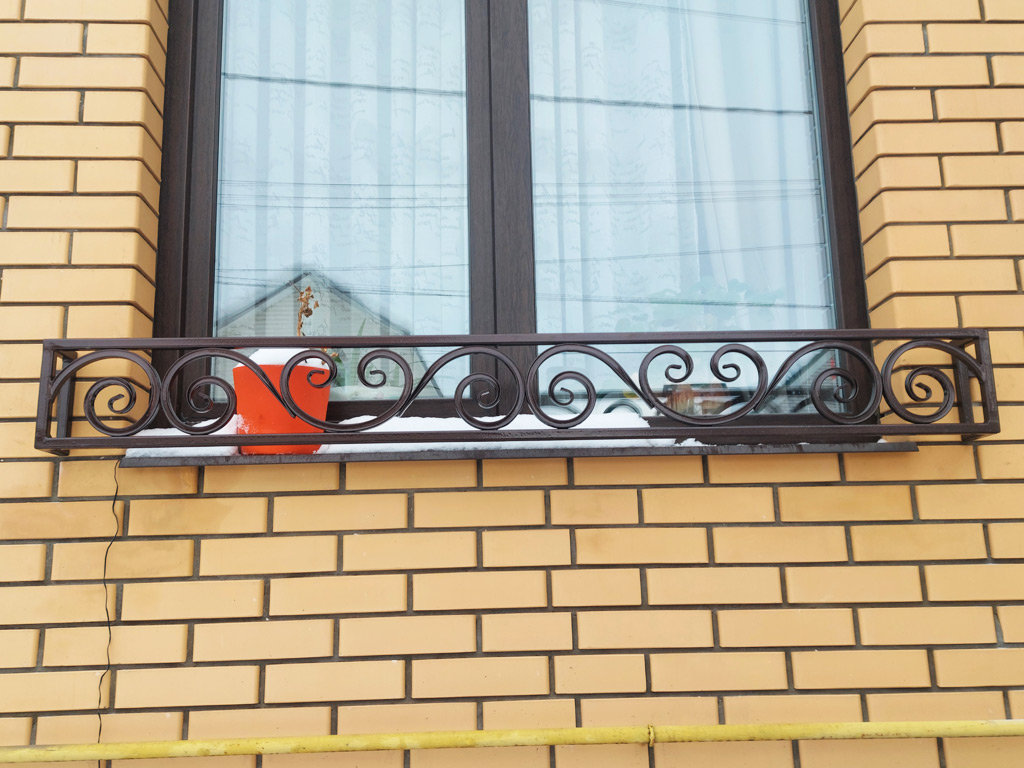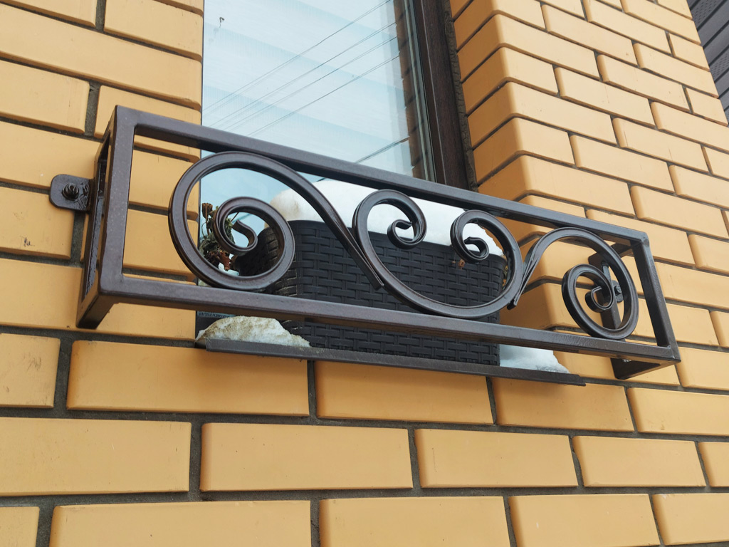 Изготовлены две сварные металлические цветочницы на окна с использованием декоративных холодногнутых элементов. Каркас из металлической профильной трубы сечением 20х20 мм. с толщиной стенки 1.5 мм. Размеры цветочниц: 1730х200 мм. и 770х200 мм. Металл окрашен молотковой краской Dali, цвет "шоколад". Крепёжные анкера закреплены в цементных швах кирпичной кладки для сохранения целостности кирпича.