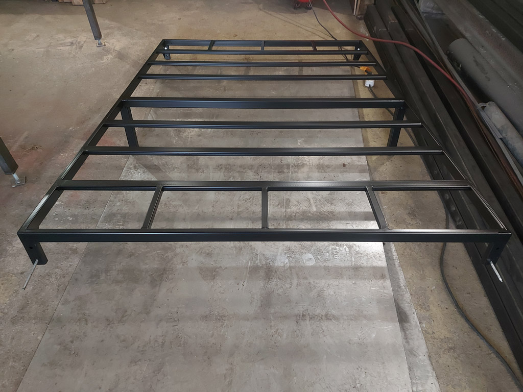 Каркас кровати со съёмными спинками на болтовых соединениях (разбирается для перевозки). Размер 2000х1400 мм. При изготовлении использована металлическая профильная труба 40х40х2 мм. и 40х20х2 мм. Каркас изготовлен для размещения клиентов в квартире с посуточной арендой.