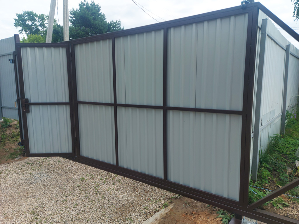 Откатные ворота с калиткой