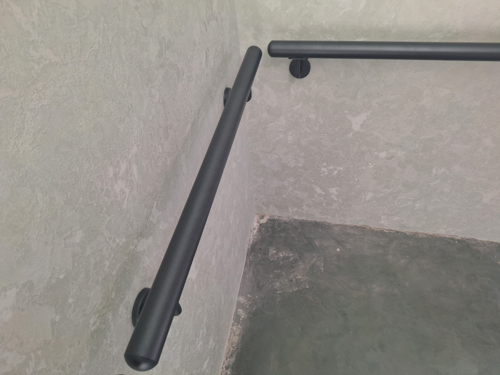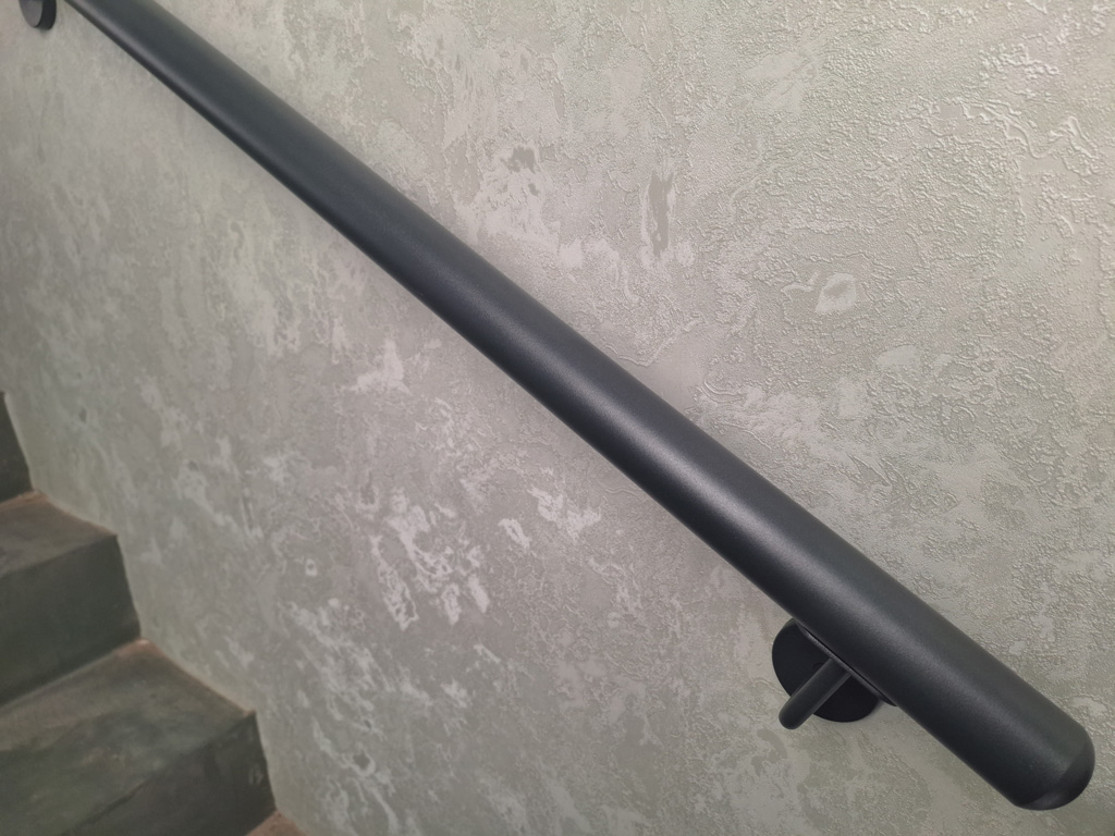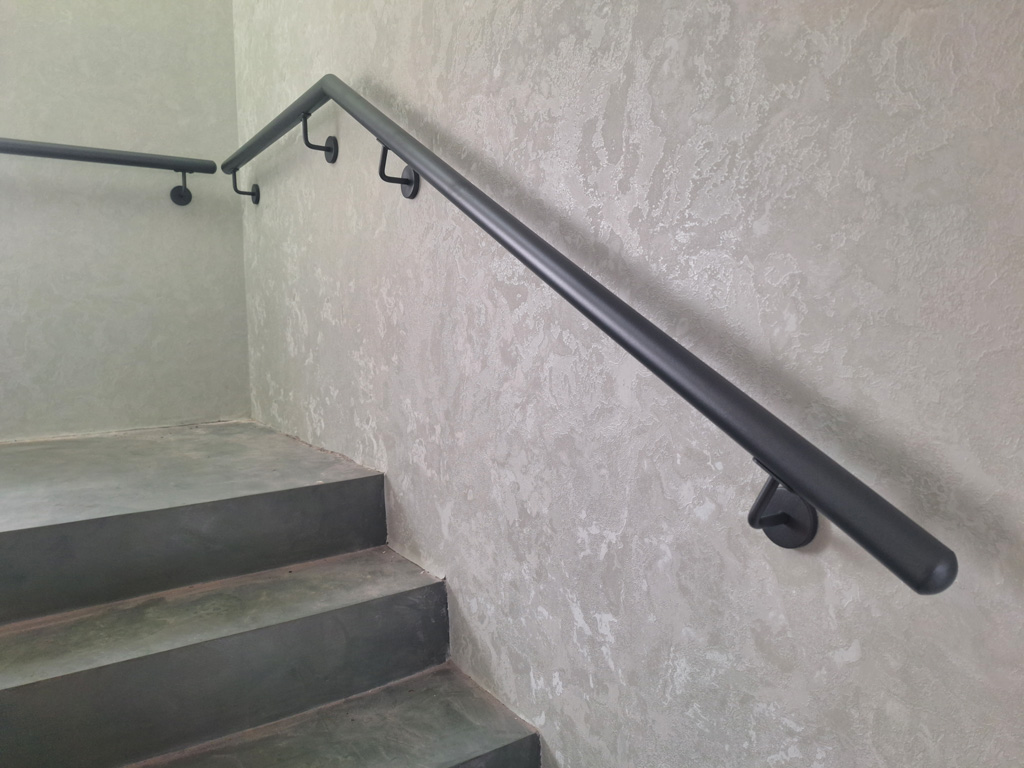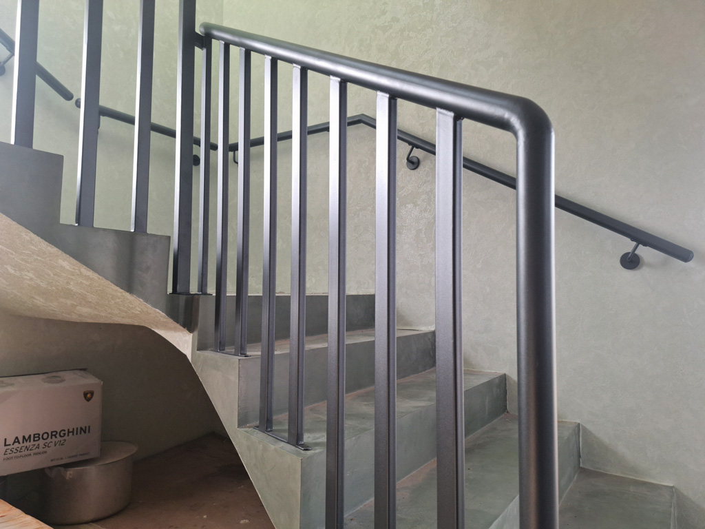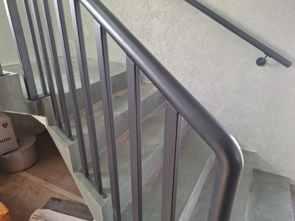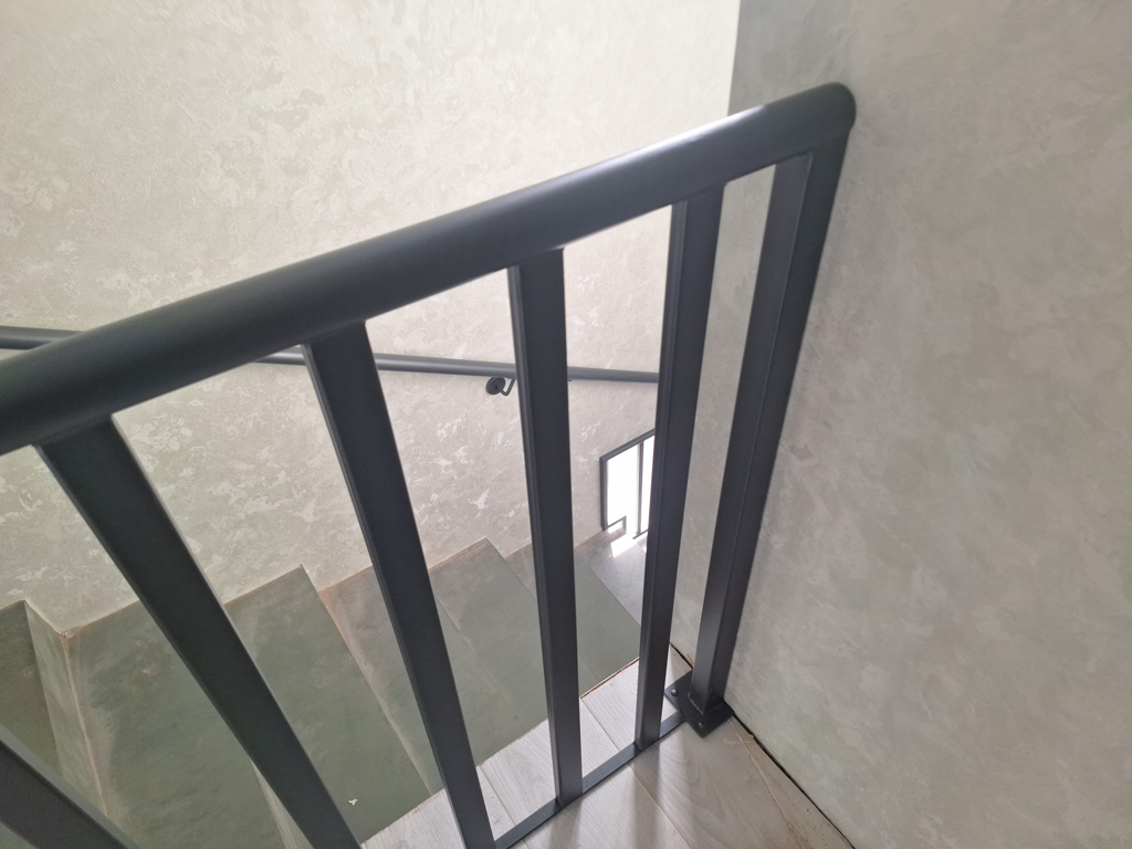 Выполнены работы по сварке нестандартных перил и ограждений с проведением сварочных работ в цеху и по месту установки с использованием полуавтоматической сварки и переносного углекислотного баллона. Поручень сделан из круглой нестандартной металлической трубы предоставленной заказчиком. Ограждение на лестницу и окно изготовлено из профильных труб сечением 40х20 и 30х30 мм. Крепление ламелей ограждения лестницы выполнено с использованием дюбель-гвоздей. Покраска металлических элементов порошковым методом в цвет RAL 7016.