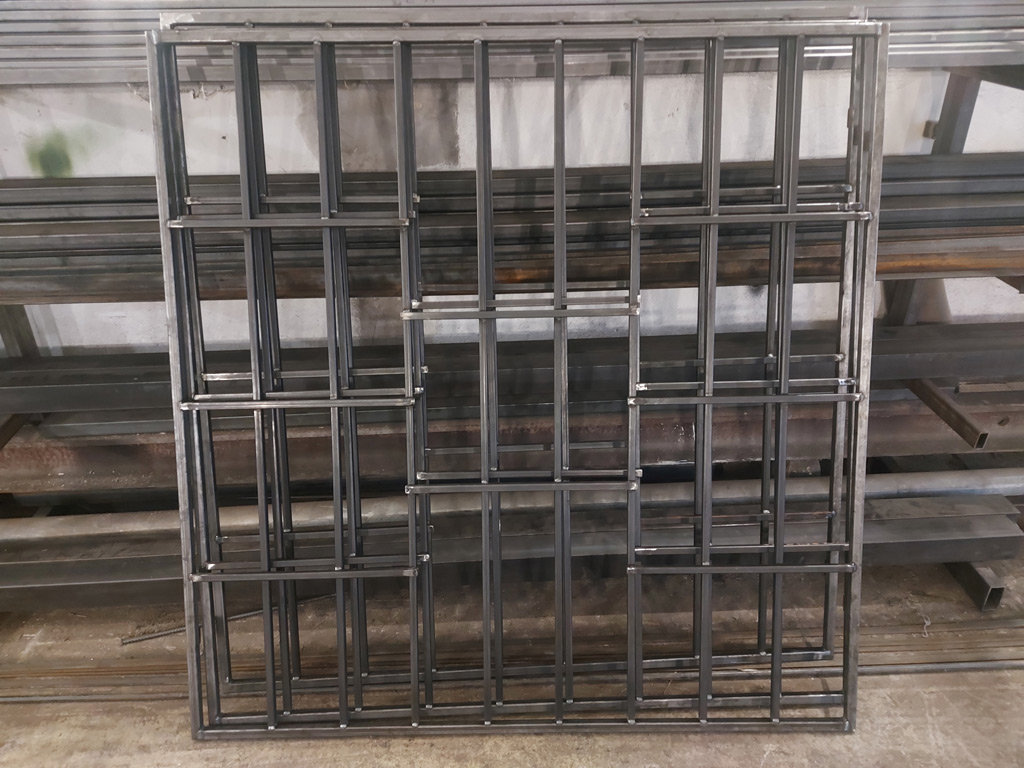 Изготовлено пять решёток для окон. Четыре в глухом и одна в распашном варианте. Использована металлическая профильная труба 15х15 и 20х20 мм. с толщиной стенки 1.5 мм. Решётки покрашены в коричневый цвет.