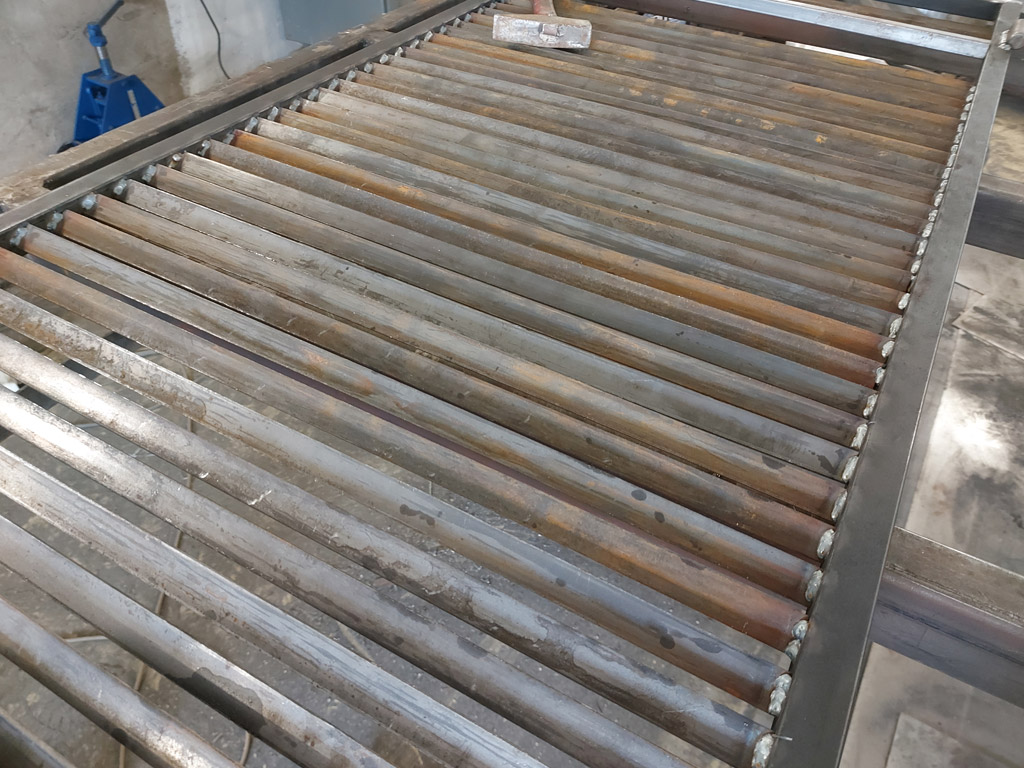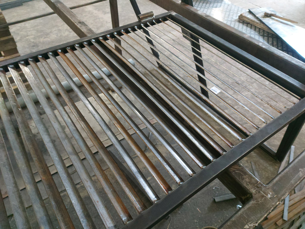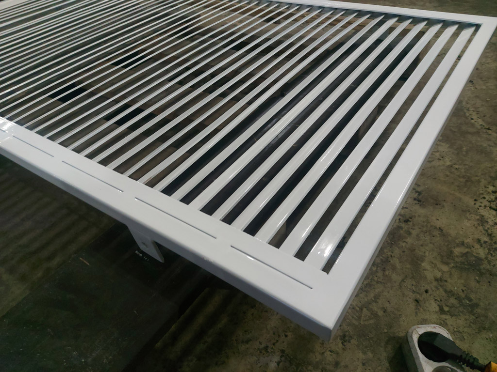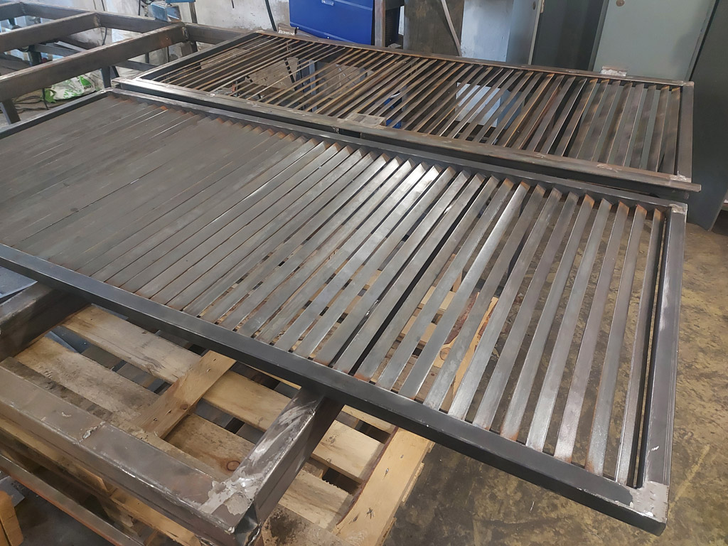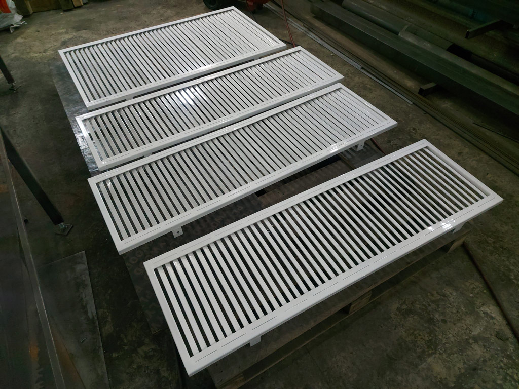 Изготовлен комплект ставен в количестве четырёх штук (8 створок). Наружная рама выполнена из профильной трубы 25х25 мм. толщиной 2 мм. Ламели изготовлены из полосы шириной 20 мм. толщиной 3 мм. Размеры изделий: 1360х1480 мм. - 1 шт., 1370х1480 мм. - 1 шт., 1370х1500 мм. - 2 шт. Металл окрашен грунт-эмалью 3 в 1 Slaven (цвет белый). Ставни закрываются на внутренний сувальдный замок.